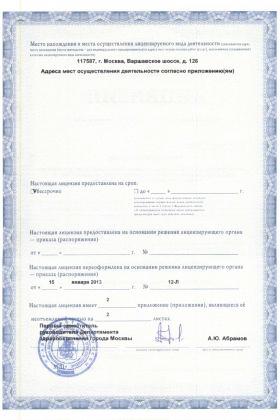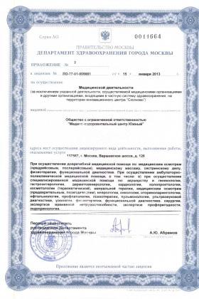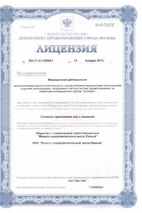 Лицензии медицинского центра МЦ Южный на Красной Пресне