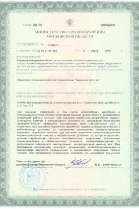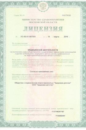 Лицензии медицинского центра МЦ Здоровое Детство в Солнечногорске