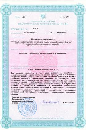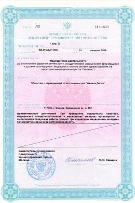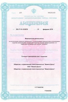 Лицензии медицинского центра МЦ Живите Долго на Варшавском шоссе