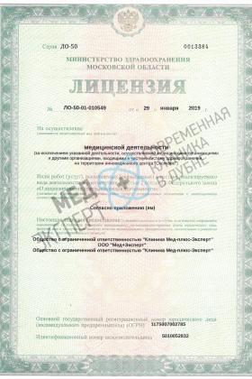 Лицензии медицинского центра Мед плюс Эксперт в Дубне
