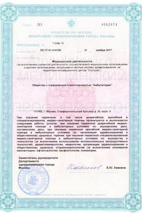 Лицензии медицинского центра Медицинский центр «Амбулатория»