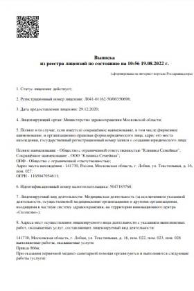 Лицензии медицинского центра Медицинский центр Семья в Лобне