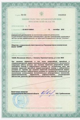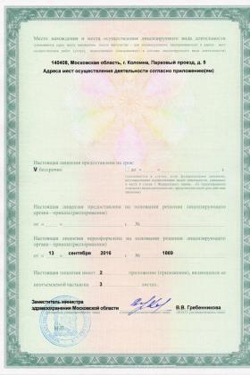 Лицензии медицинского центра Медикос в Коломне в Парковом проезде