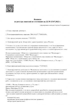 Лицензии медицинского центра Медквадрат на Каширском ш.