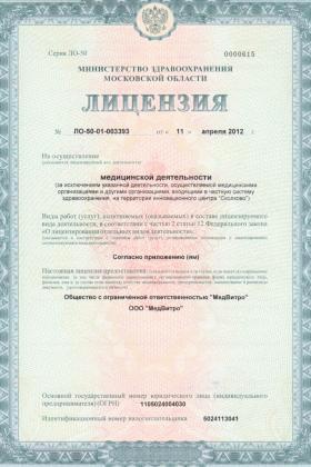 Лицензии медицинского центра МедВитро в Красногорске на Ильинском бульваре