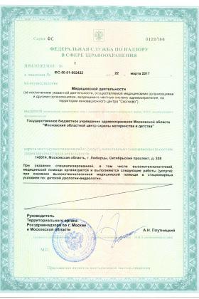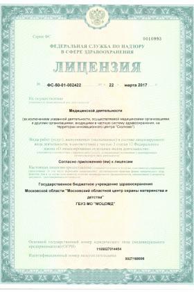 Лицензии медицинского центра МОЦ охраны материнства и детства в Люберцах на Мира