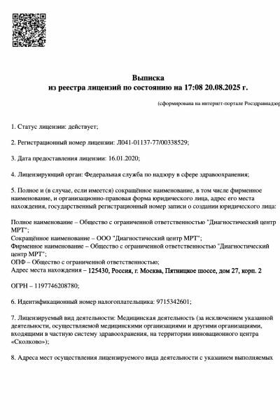 8 (495) 363-40-76Лицензии медицинского центра МРТ Клиник Митино