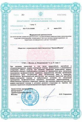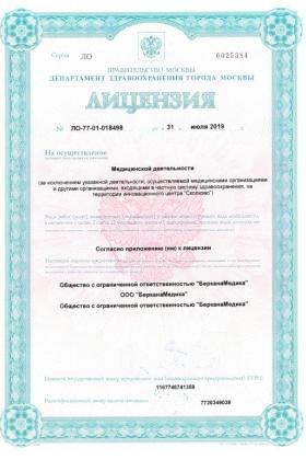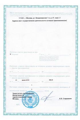 Лицензии медицинского центра НИАРМЕДИК на 1-й Владимирской