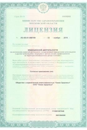 Лицензии медицинского центра Океан здоровья в Балашихе