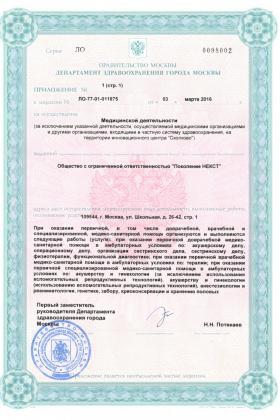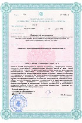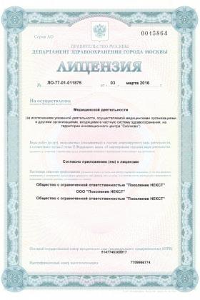 Лицензии медицинского центра Поколение Некст на Школьной