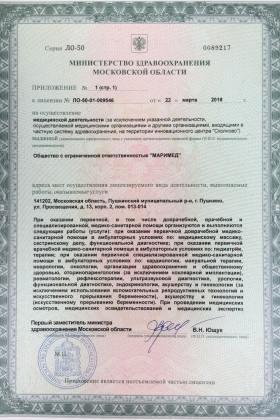 Лицензии медицинского центра Поликлиника №1 в Пушкино на Просвещения