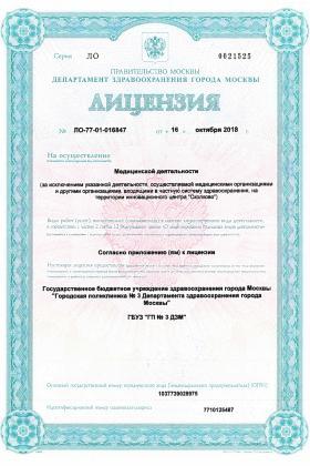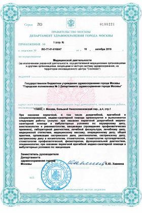 Лицензии медицинского центра Поликлиника №3 в Большом Николопесковском переулке
