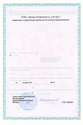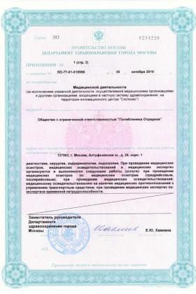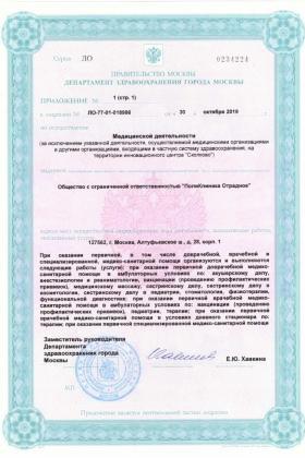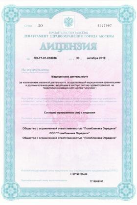 Лицензии медицинского центра ПолиКлиника Отрадное на Алтуфьевском