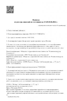 Лицензии медицинского центра Поликлиника.ру м. Смоленская