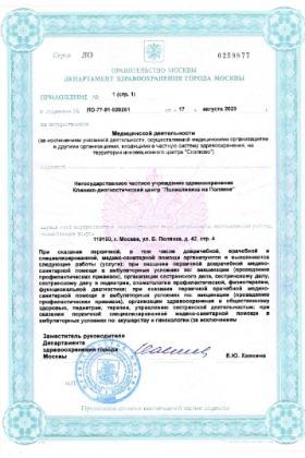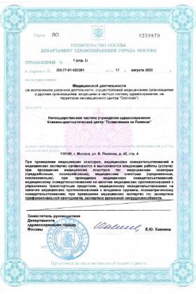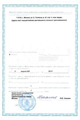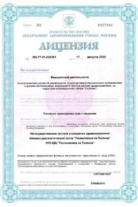 Лицензии медицинского центра Поликлиника.ру м. Полянка