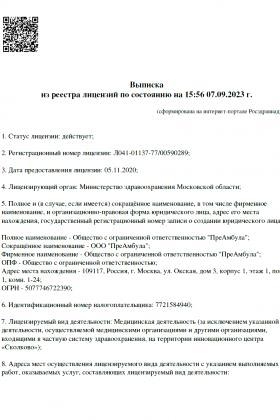 Лицензии медицинского центра ПреАмбула Кузьминки