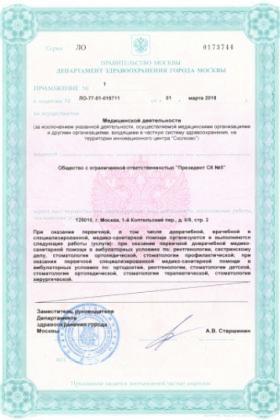Лицензии медицинского центра ПрезиДент на Сухаревской