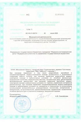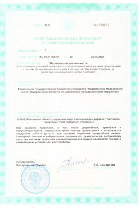 Лицензии медицинского центра Санаторий Орбита-2 в Толстяково