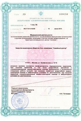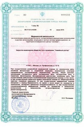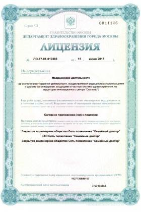 Лицензии медицинского центра Семейный доктор на Профсоюзной