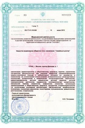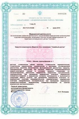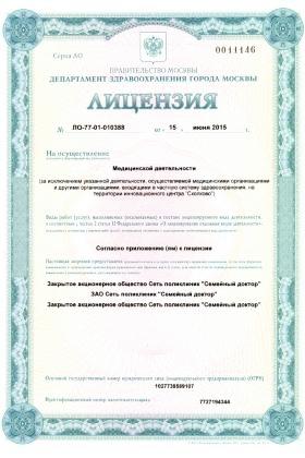 Лицензии медицинского центра Семейный доктор в проезде Дежнева