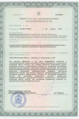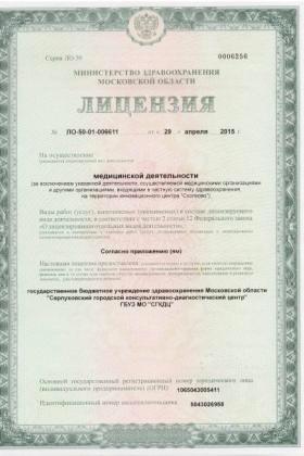 Лицензии медицинского центра Серпуховский диагностический центр на Ворошилова