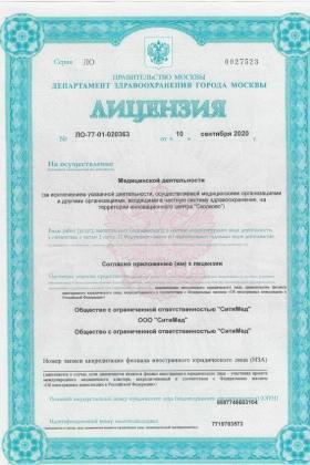 Лицензии медицинского центра СитиМед на Братиславской