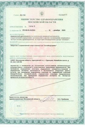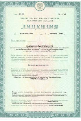Лицензии медицинского центра СитиМедСервис в Одинцово