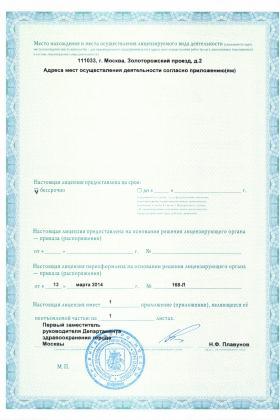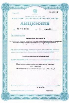 Лицензии медицинского центра СлимХауз в Золоторожском проезде