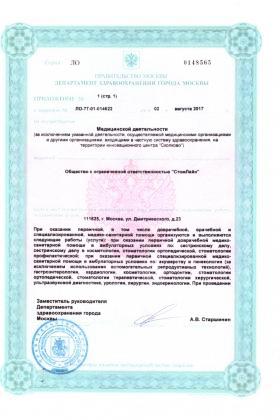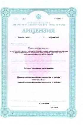 Лицензии медицинского центра Стом Лайн на Дмитриевского