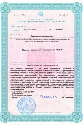 Лицензии медицинского центра Стоматология Галактика на Тверской