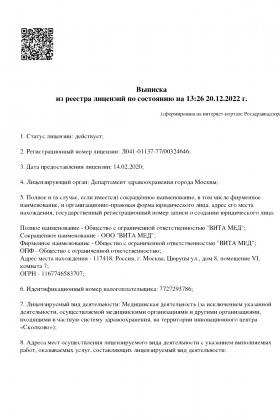 Лицензии медицинского центра Вита Мед в проезде Ольминского