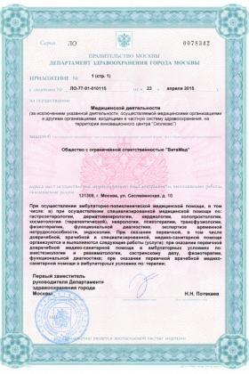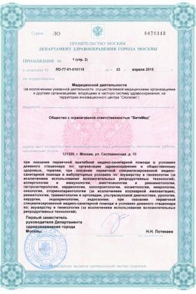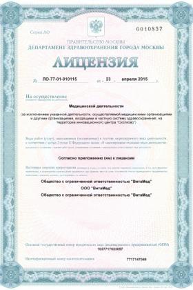 Лицензии медицинского центра ВитаМед на Сеславинской