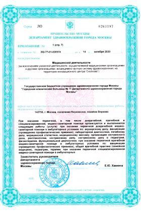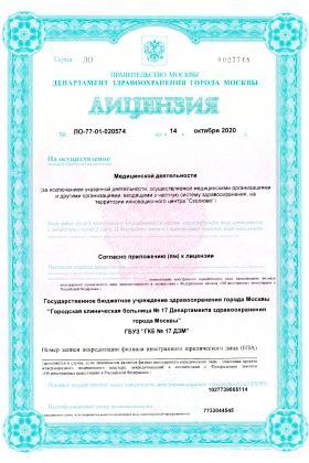 Лицензии медицинского центра Внуковский филиал ГКБ №17 на Маяковского