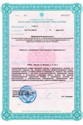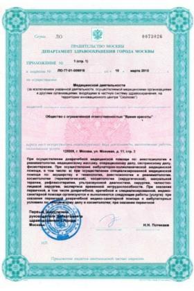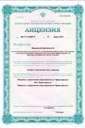 Лицензии медицинского центра Время Красоты на Моховой