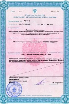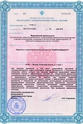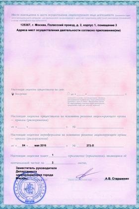 Лицензии медицинского центра Вымпел в Полесском проезде