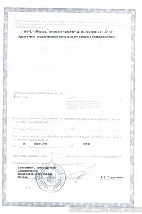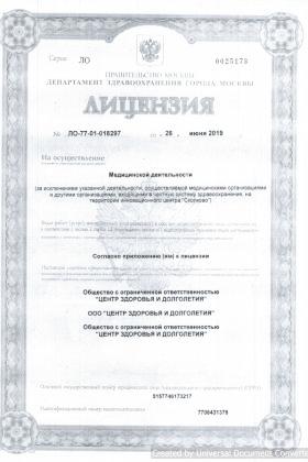 Лицензии медицинского центра ЗдравКлиник на Ленинском проспекте
