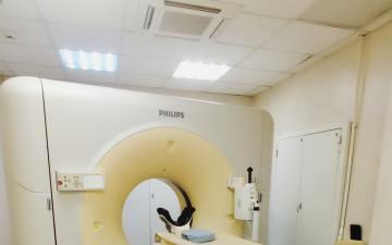Томограф МРТ: Achieva фирмы Philips, до 125 кг (коленный сустав до 120 кг) и до 120 см в обхвате, при МРТ коленного сустава катушка до 45см., 1,5 Тл, закрытый высокопольный